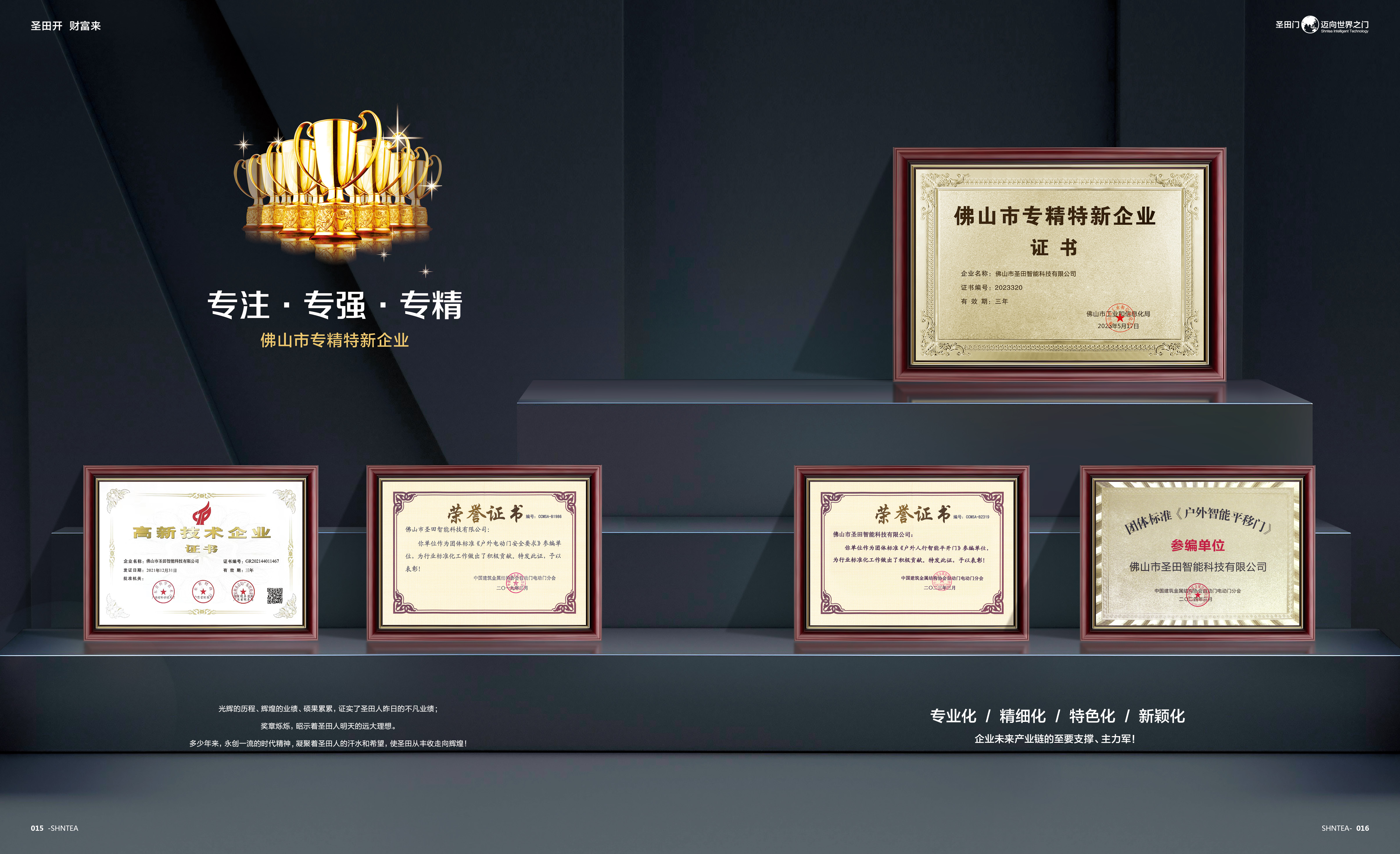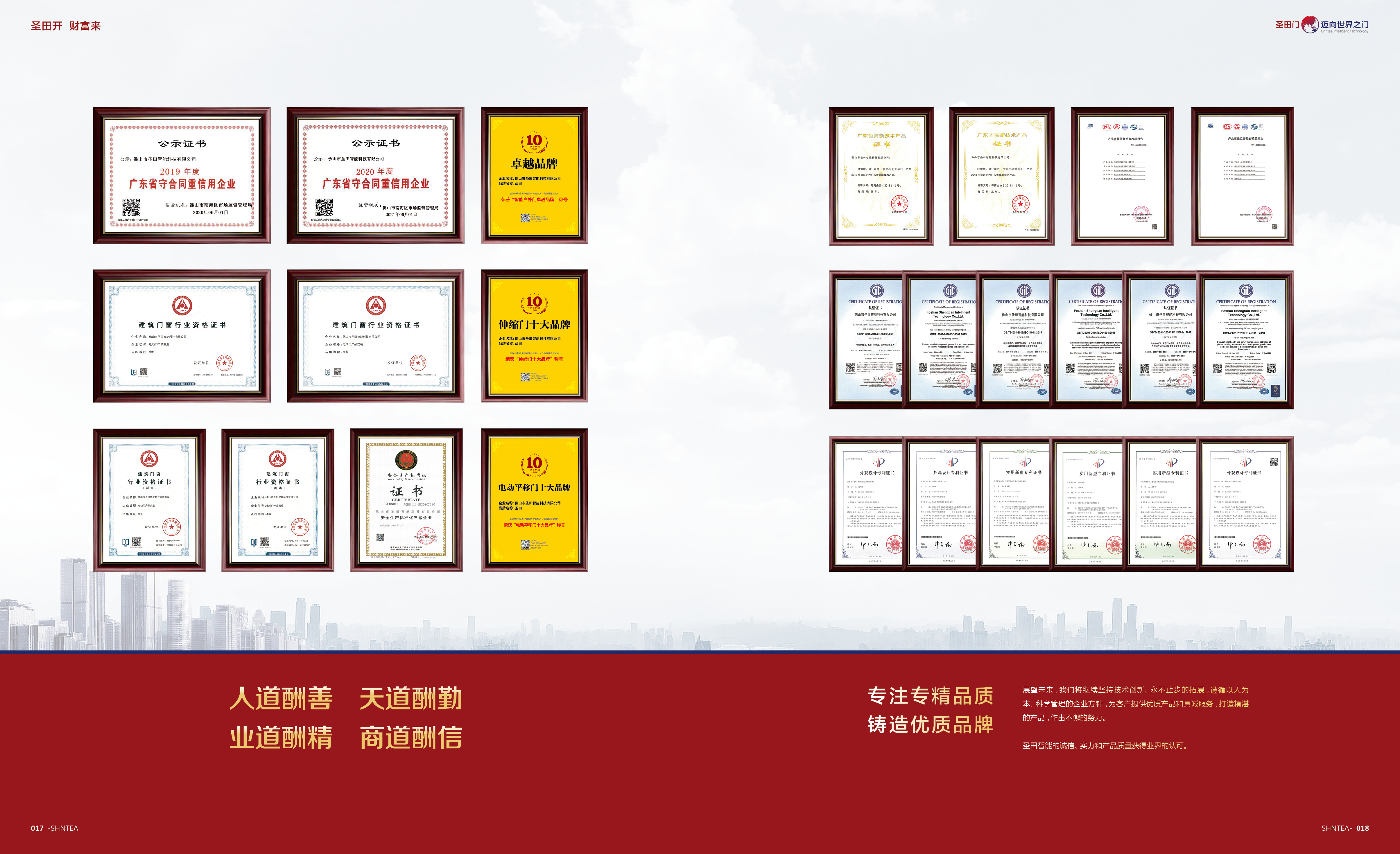 圣田智能,創(chuàng)立至今已經(jīng)23年載,榮獲“國(guó)家高新技術(shù)企業(yè)、廣東省“守合同重信用”企業(yè)、佛山市“專精特新”企業(yè)等多項(xiàng)榮譽(yù)。擁有自建廠房30000+平方生產(chǎn)基地,是一家集研發(fā)、生產(chǎn)、銷售、售后服務(wù)于一體的大型電動(dòng)門企業(yè),多個(gè)門窗領(lǐng)域配套構(gòu)建圣田整個(gè)產(chǎn)業(yè)系統(tǒng)。我們始終把“安全、智能、品質(zhì)”定為智能出入口安防第一要素,參與多項(xiàng)行業(yè)“團(tuán)體標(biāo)準(zhǔn)參編單位”,獲得多項(xiàng)獨(dú)立的知識(shí)產(chǎn)權(quán)及多項(xiàng)行業(yè)專利技術(shù)。